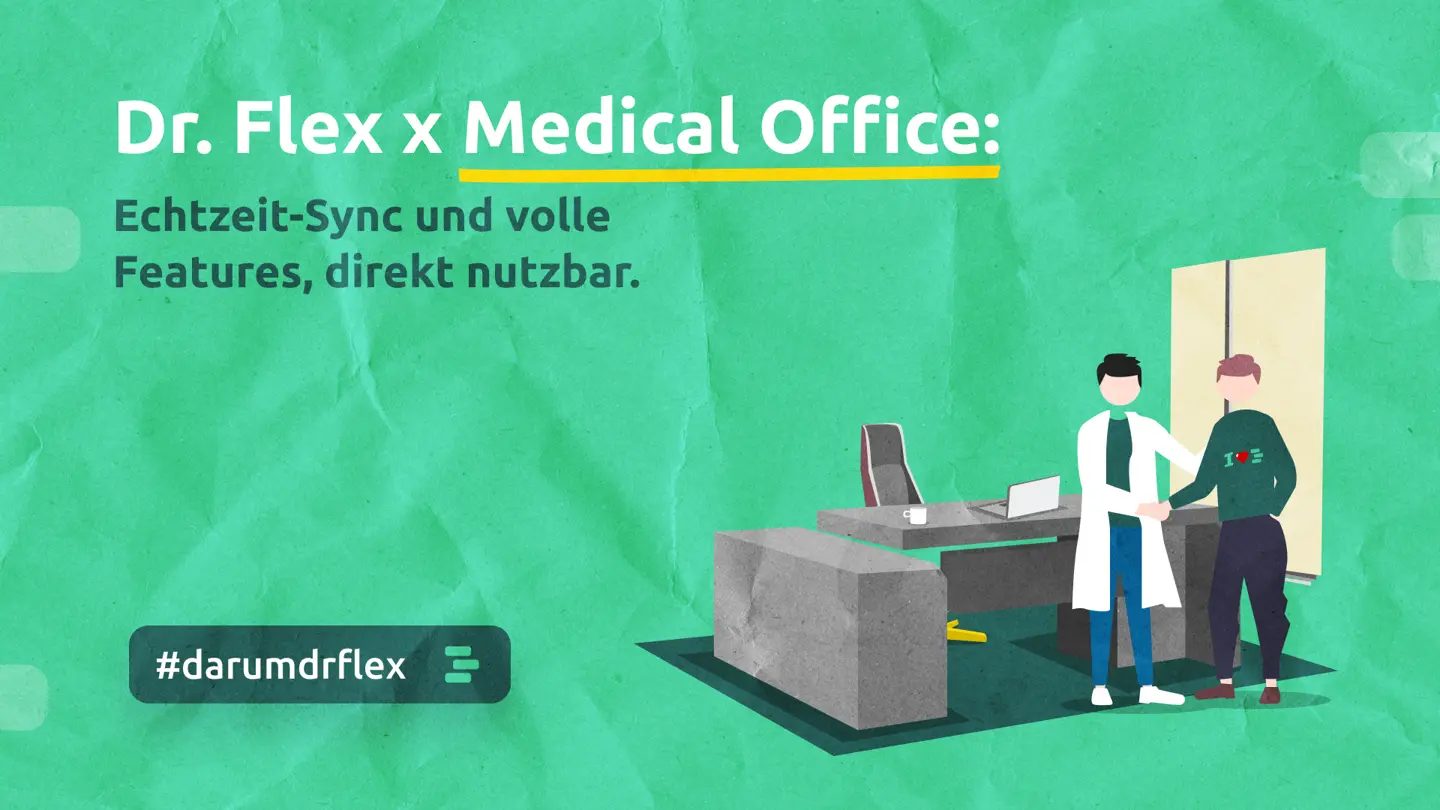 Eine Freude für Medical Office-Praxen: Dr. Flex hat ein umfassendes Update für die Schnittstelle zu Medical Office ausgerollt – damit steht ab sofort die volle Leistungsfähigkeit von Dr. Flex auch für die Nutzer:innen der Medical Office Praxissoftware bereit.